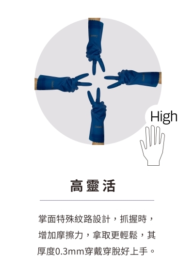 手掌掌面特殊花紋設計,摩擦力佳,抓著力優。
