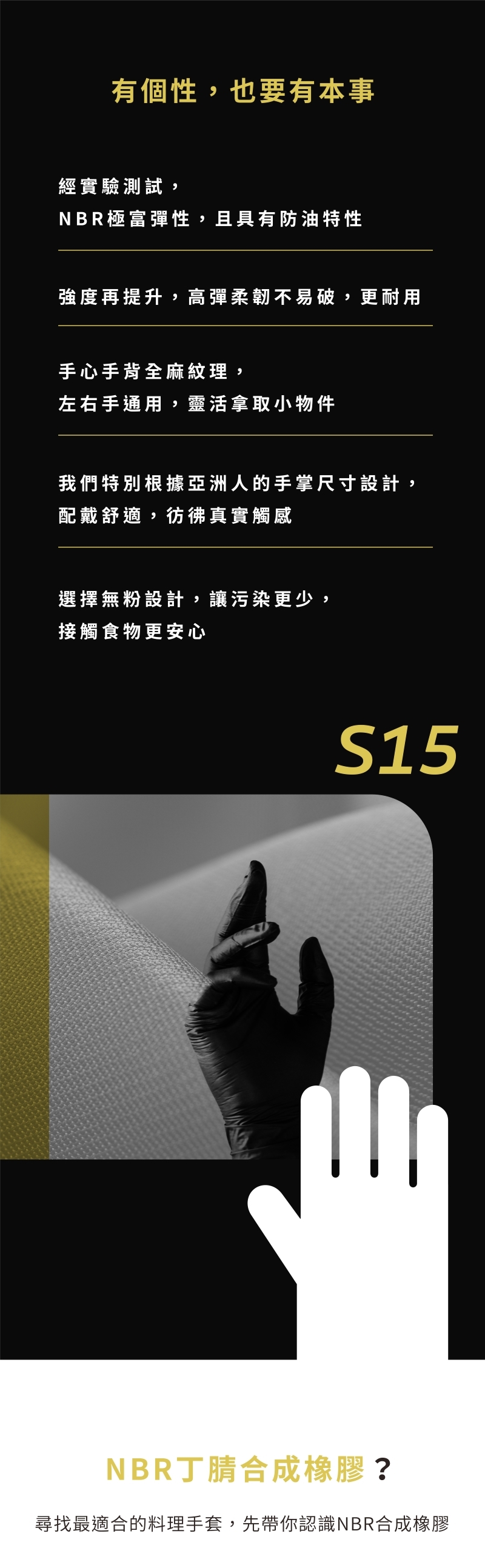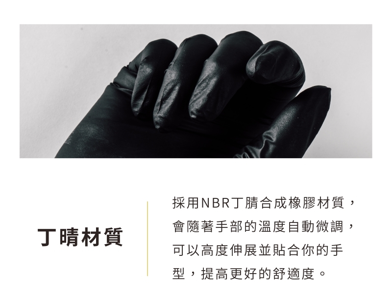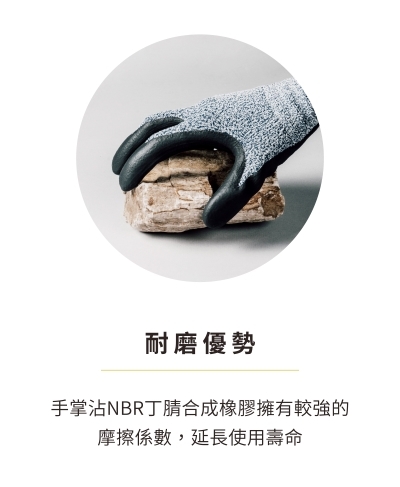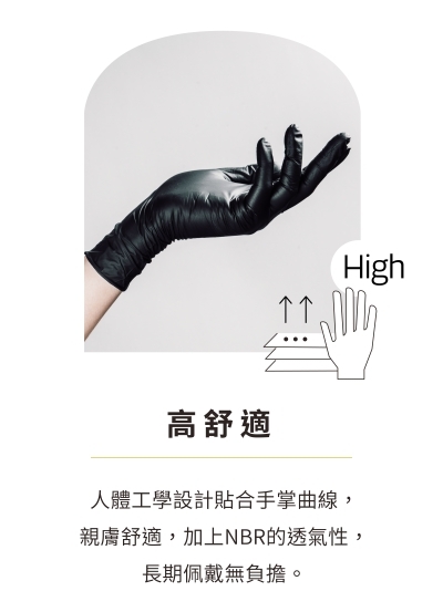 透氣性比天然橡膠手套優越,長時間穿戴時,手部較不易出汗潮濕且較舒適耐用