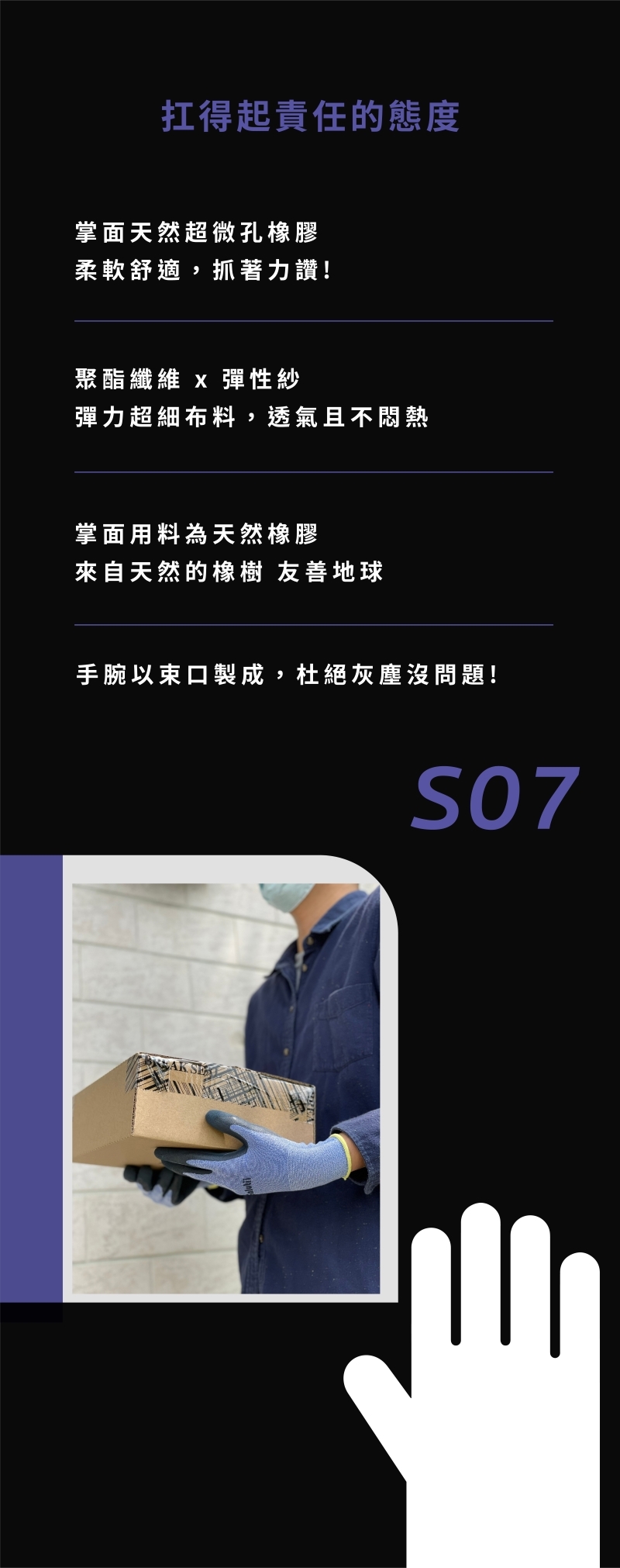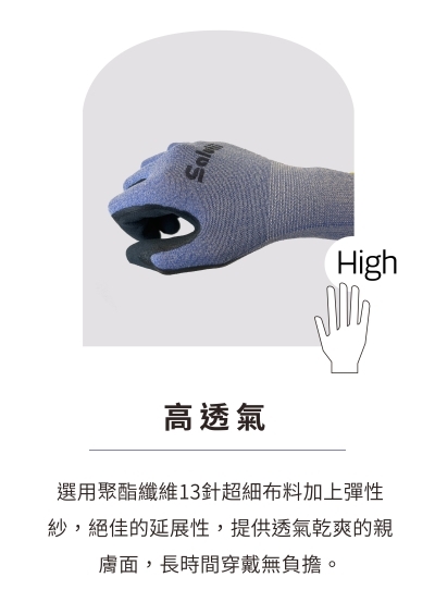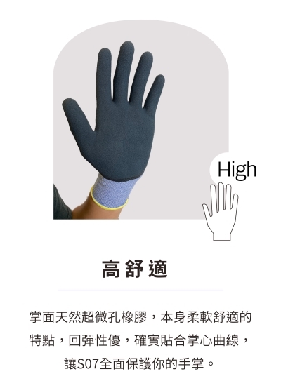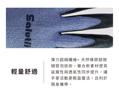 掌面天然超微孔橡膠,特別柔軟舒適,抓力特強