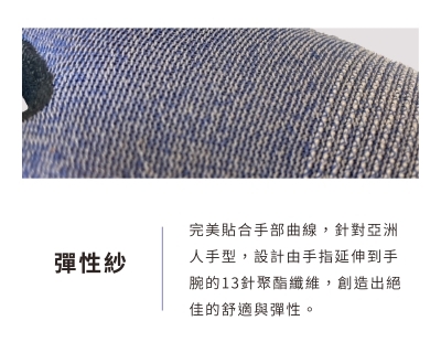 細緻聚酯纖維與彈性紗編織,特別合手服貼,透氣不悶熱